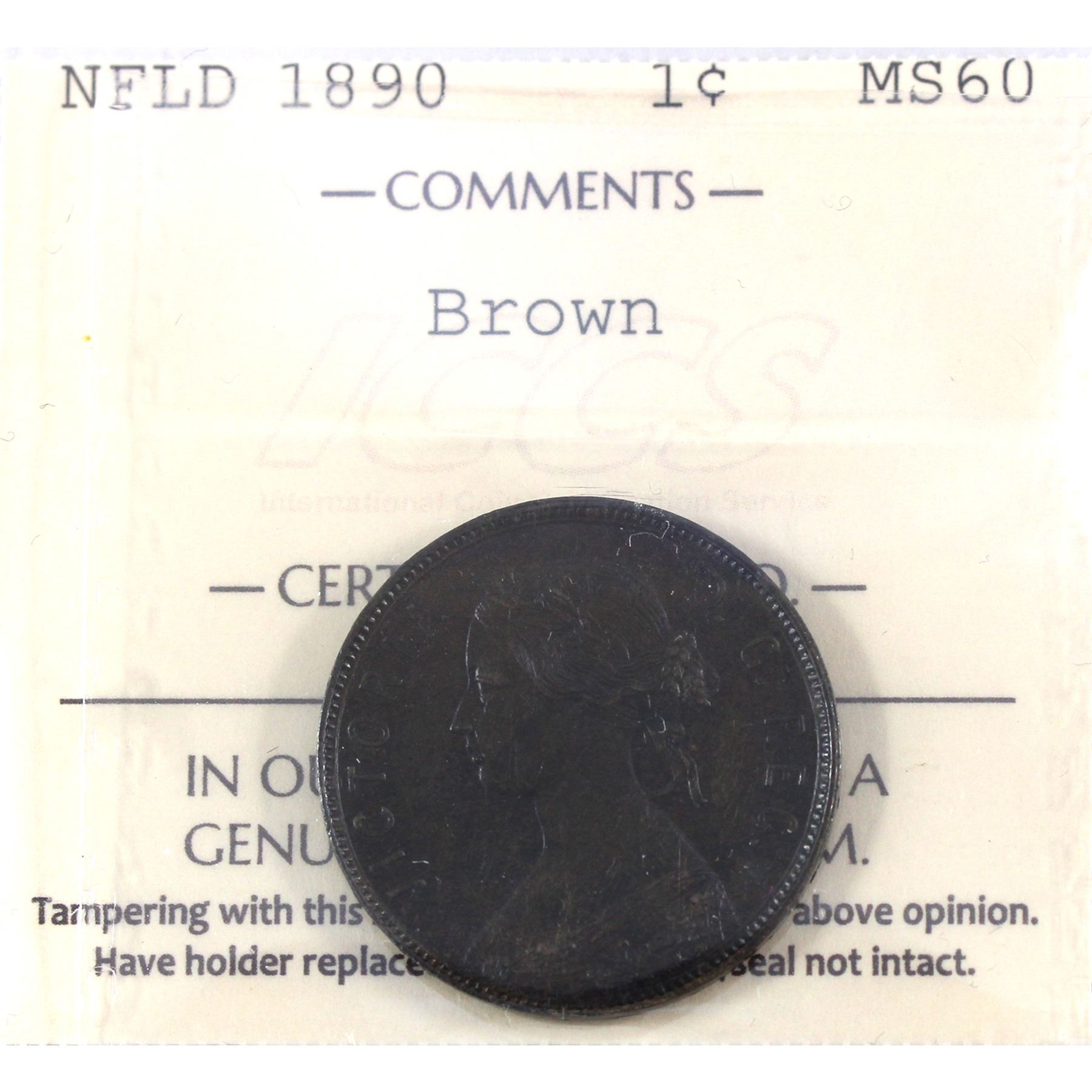 NFLD 1-cent 1890 ICCS Certified MS60, Brown. Nice Consistent Brown Surface!