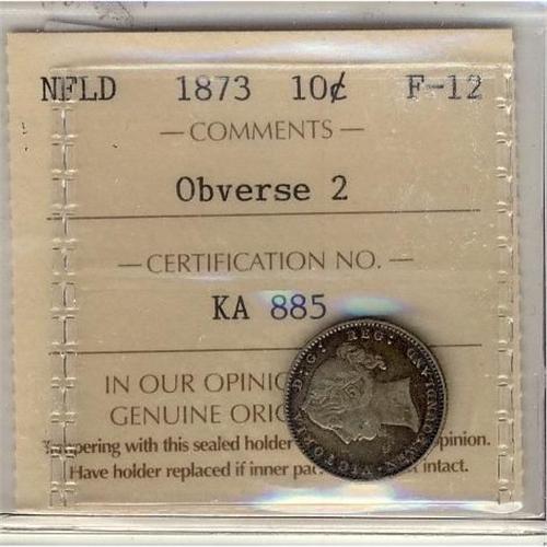 NFLD 1873 10¢ Obv 2 ICCS F-12,