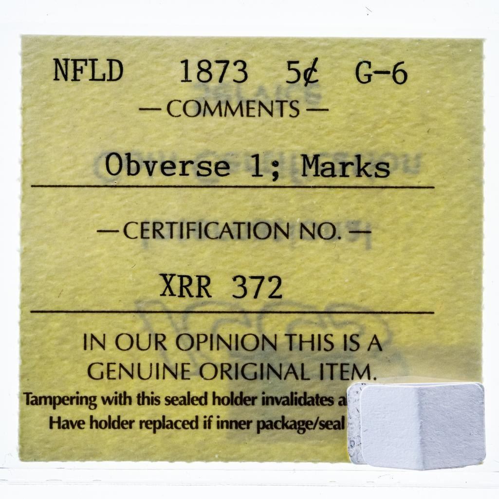 NFLD 1873 5C, G-6, Obverse 1; Marks - ICCS