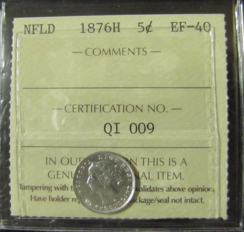 NFLD 1876H 5¢ ICCS EF40. Lustrous, scarce.