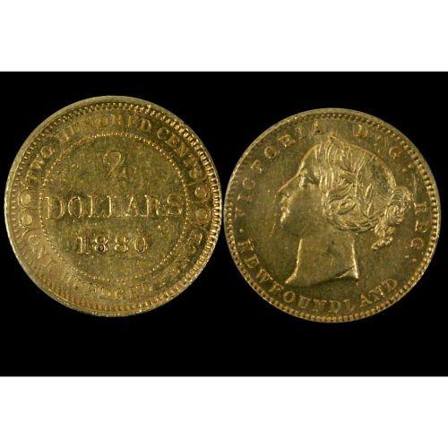 NFLD 1880 $2 ICCS AU55, A nice coin with lots of lustre. Rare date