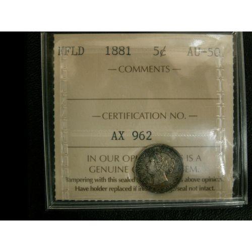 NFLD 1881 5¢ ICCS AU50, a nice coin
