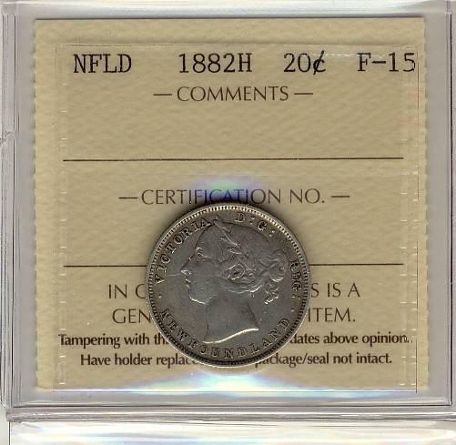 NFLD 1882H 20¢ ICCS F-15