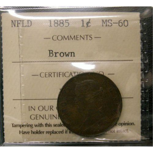 NFLD 1885 1¢ ICCS MS-60, nice chocolate brown example. Scarce in this designation