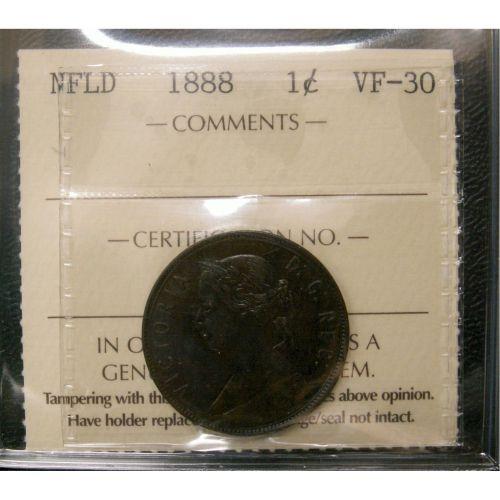NFLD 1888 1¢ ICCS VF-30, nice chocolate brown exa