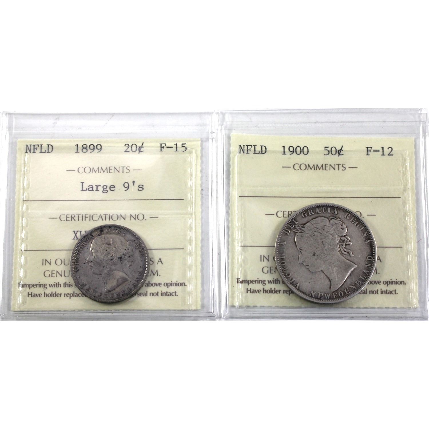 NFLD 1899 Large 9's 20-cent ICCS Certified F-15 & 1900 50-cent ICCS Certified F-12. 2pcs