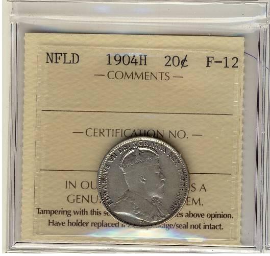 NFLD 1904H 20¢ ICCS F-12