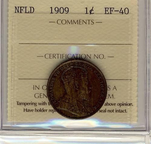 NFLD 1909 1¢ ICCS EF-40