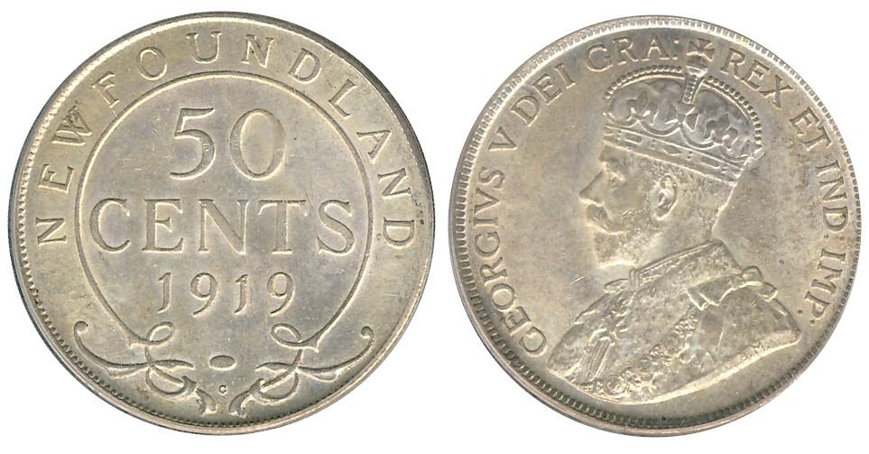 NFLD 1919C 50¢ PCGS MS64PQ. Light russet tone over full underlying lustre. Nice coin!