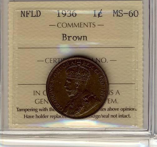 NFLD 1936 1¢ ICCS MS-60