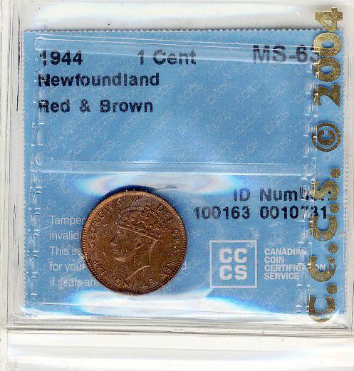 NFLD 1944 1¢ CCCS MS63 RB