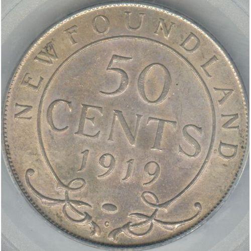 NFLD 50 Cents 1919c, graded PCGS MS-64. Light russet tone over full luster, a premium quality coin.