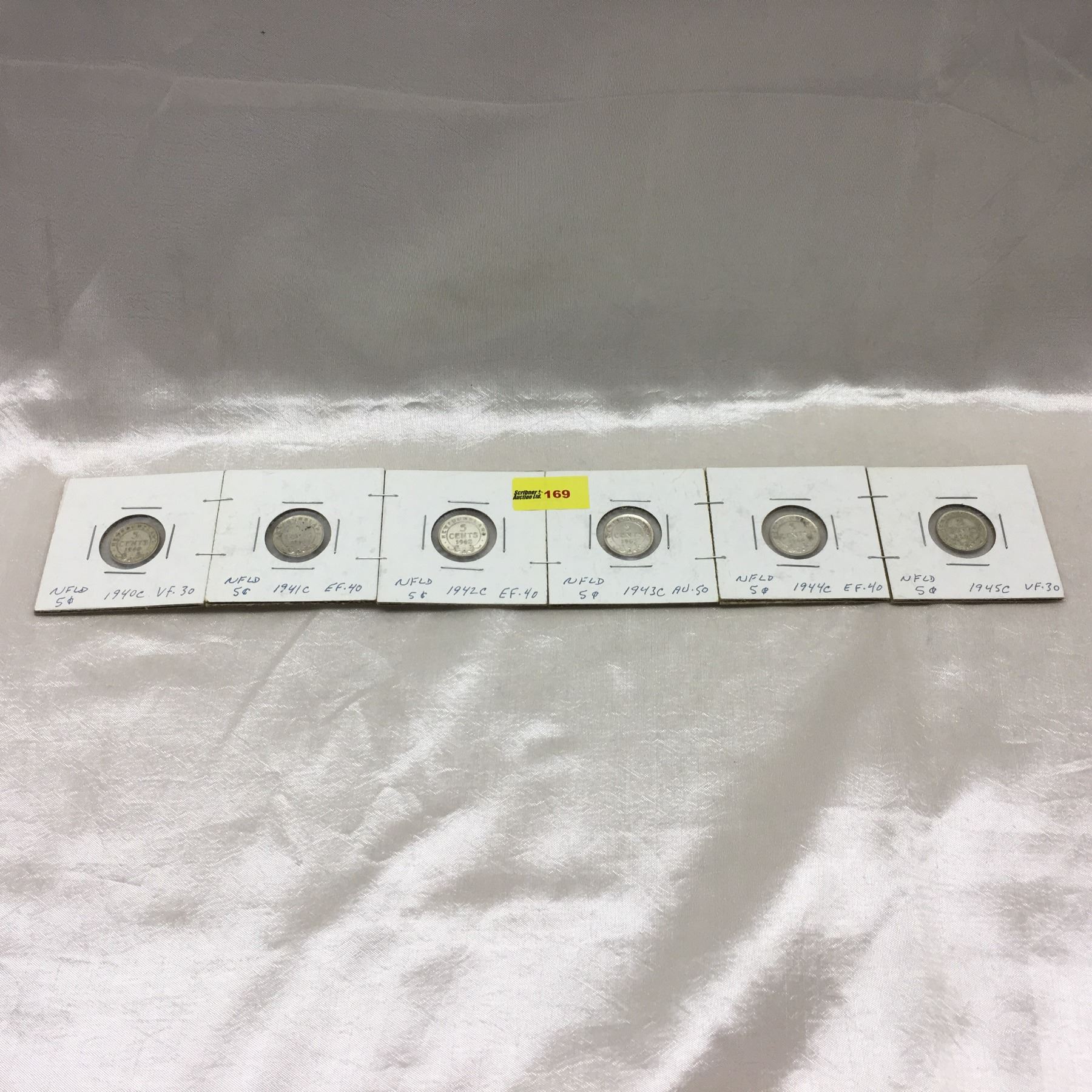 NFLD Five Cent - Strip of 6: 1940c; 1941c; 1942c; 1943c; 1944c; 1945c