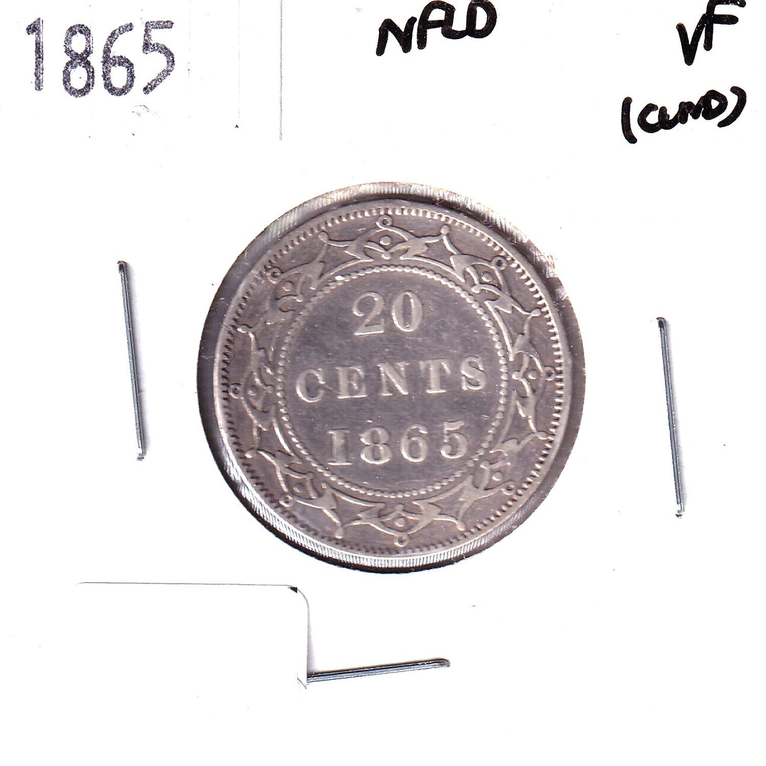 Newfoundland 1865 Silver 20-cent in VF condition (coin has been lightly cleaned)