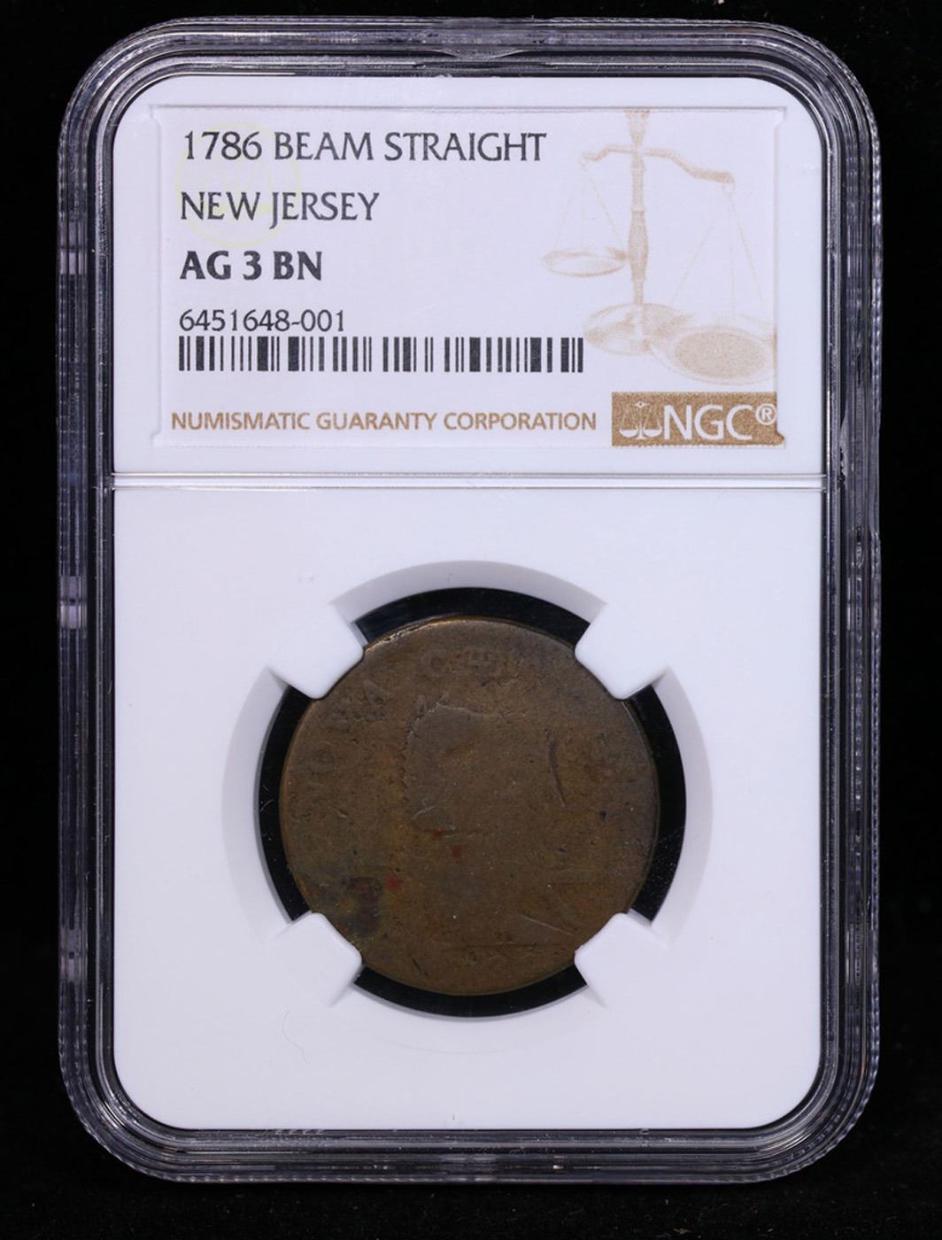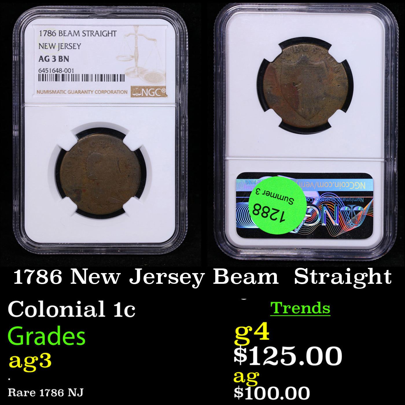 NGC 1786 New Jersey Beam Straight Colonial Cent 1c Graded ag3 By NGC.