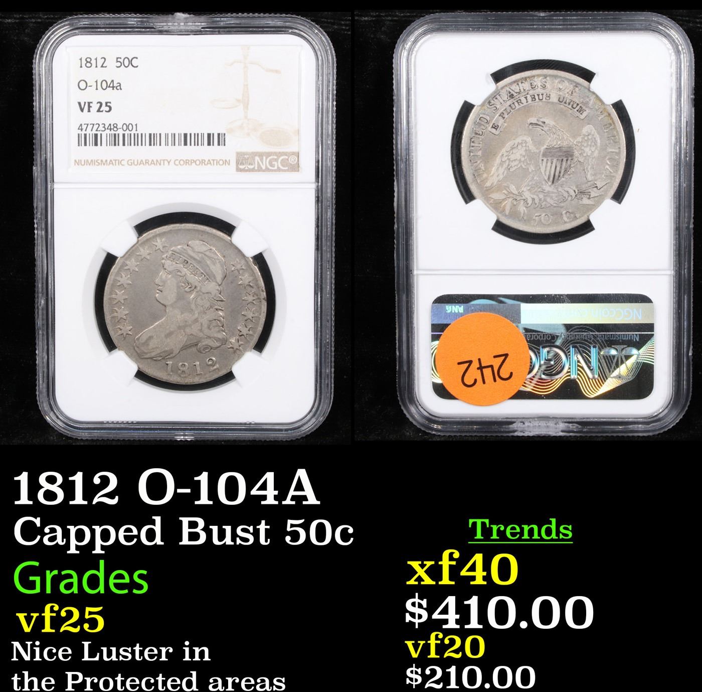 NGC 1812 O-104A Capped Bust Half Dollar 50c Graded vf25 By NGC.