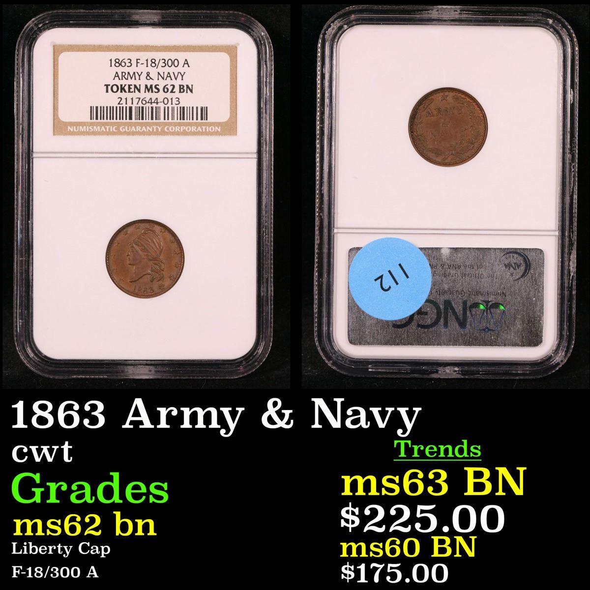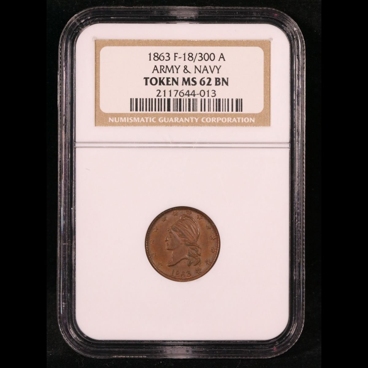NGC 1863 Army & Navy F-18/300 A Liberty Cap Civil War Token 1c Graded ms62 bn By NGC.