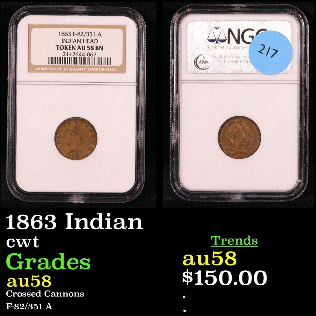NGC 1863 Indian F-82/351 A Crossed Cannons Civil War Token 1c Graded au58 By NGC.