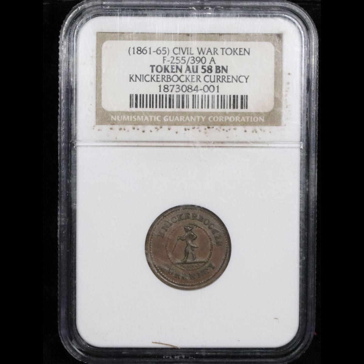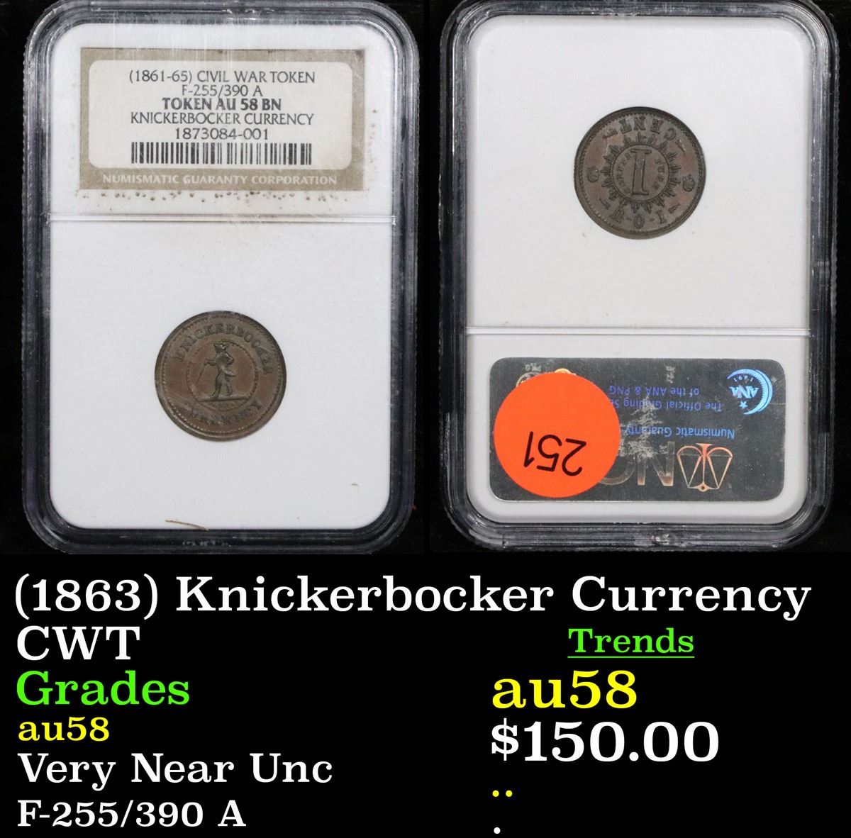 NGC (1863) Knickerbocker Currency Civil War Token 1c Graded au58 By NGC.