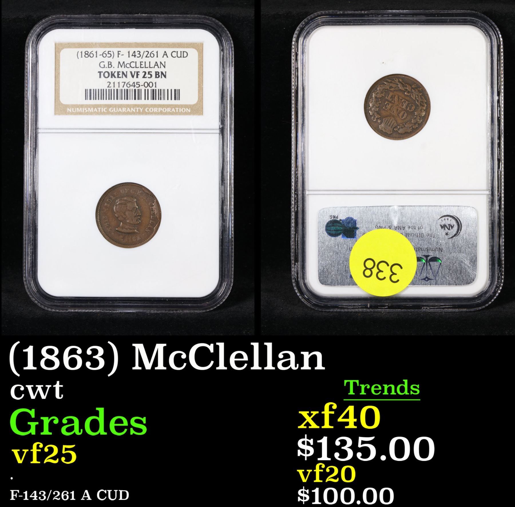 NGC (1863) McClellan F-143/261 A CUD . Civil War Token 1c Graded vf25 By NGC.