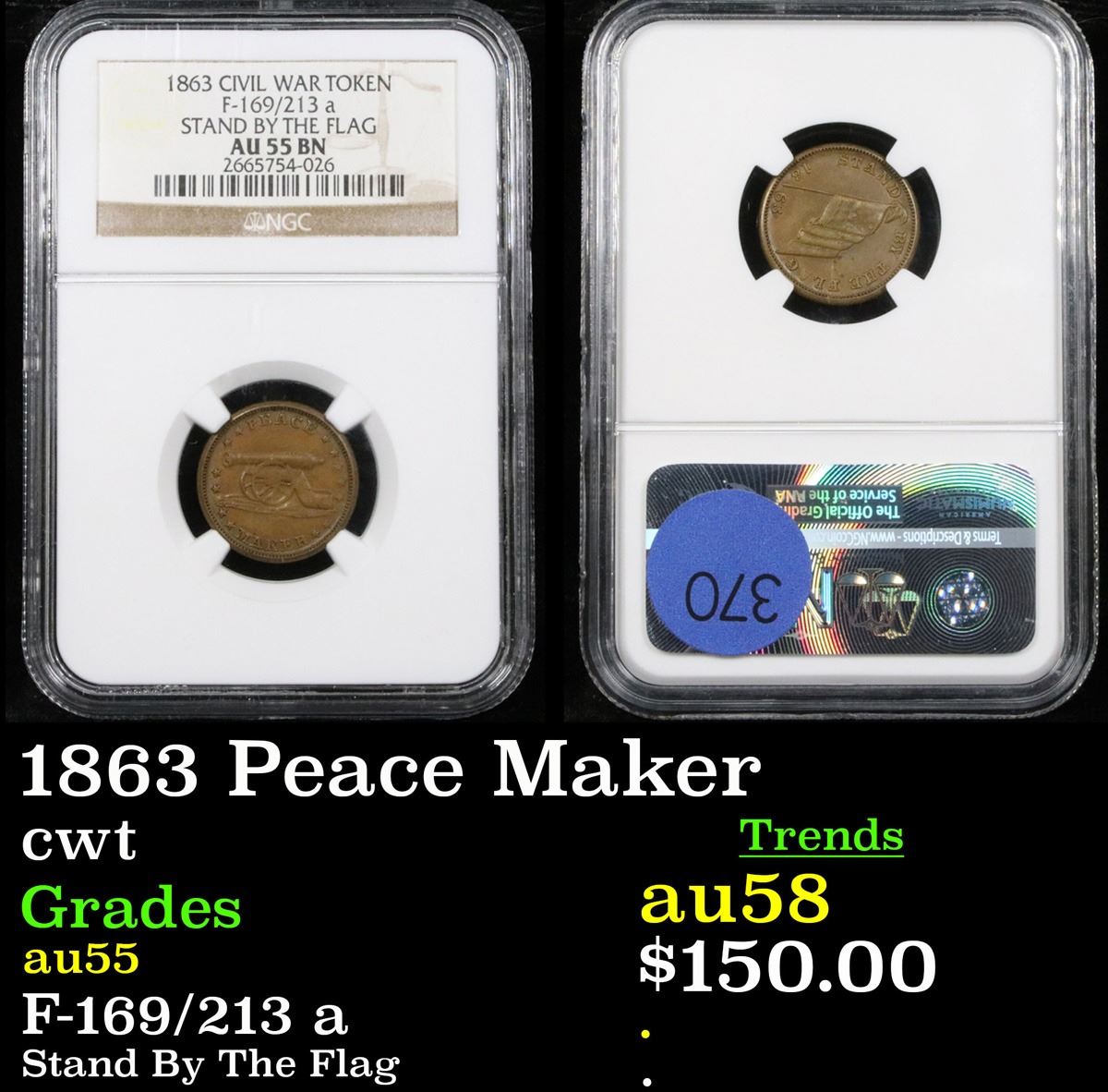NGC 1863 Peace Maker Civil War Token 1c Graded au55 By NGC.