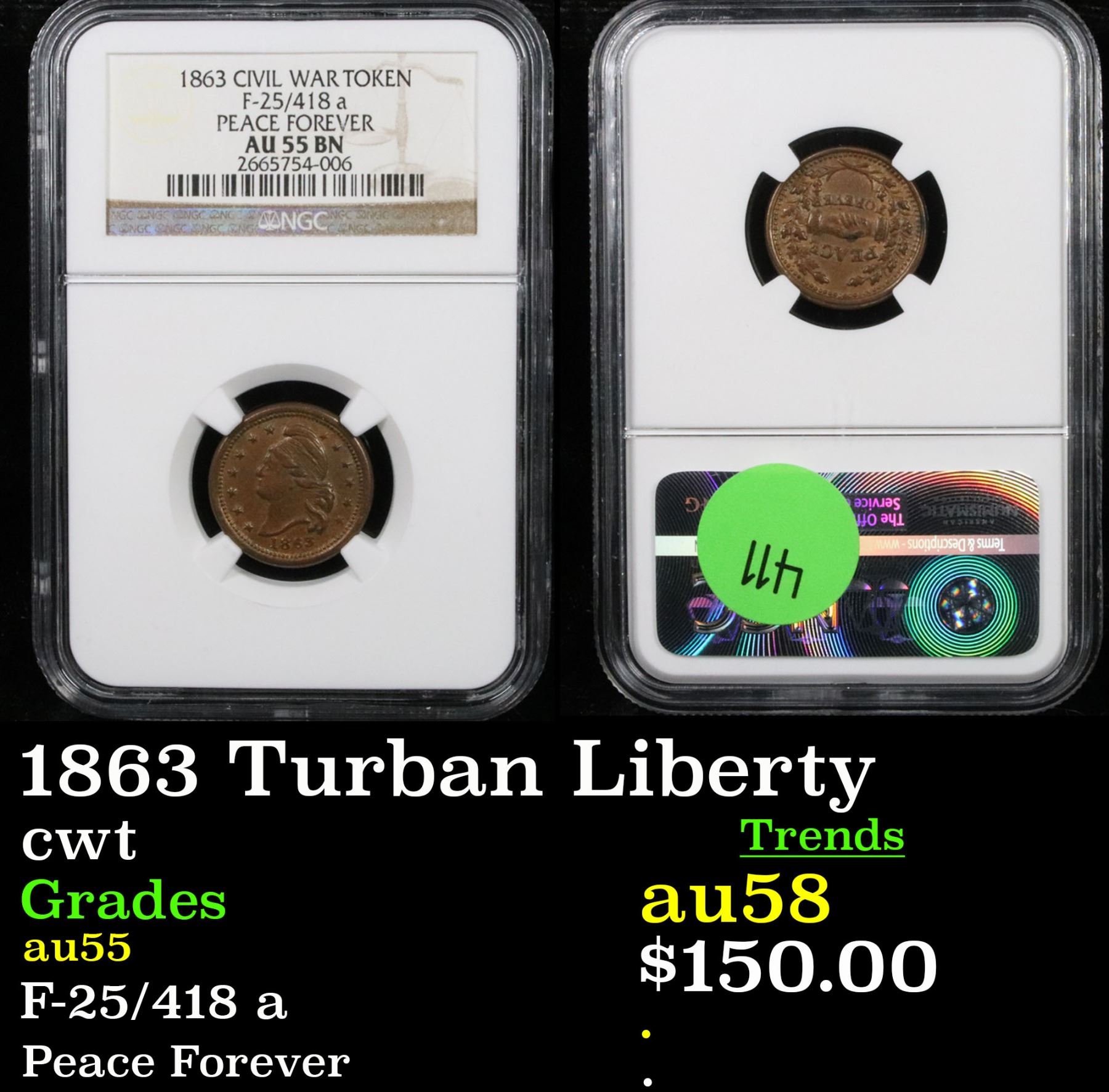 NGC 1863 Turban Liberty Civil War Token 1c Graded au55 By NGC.