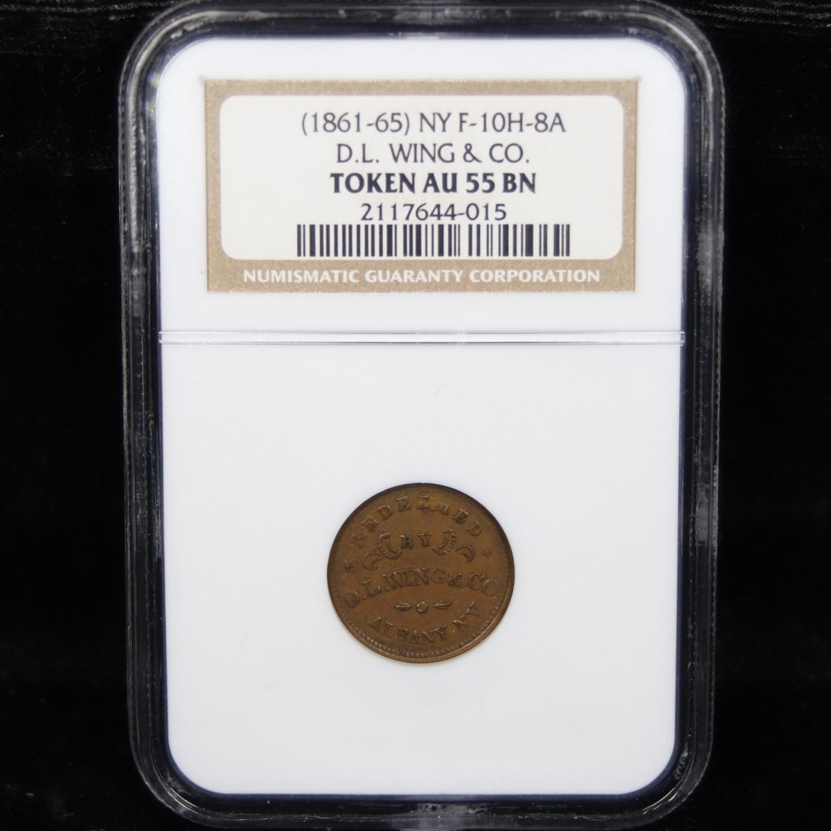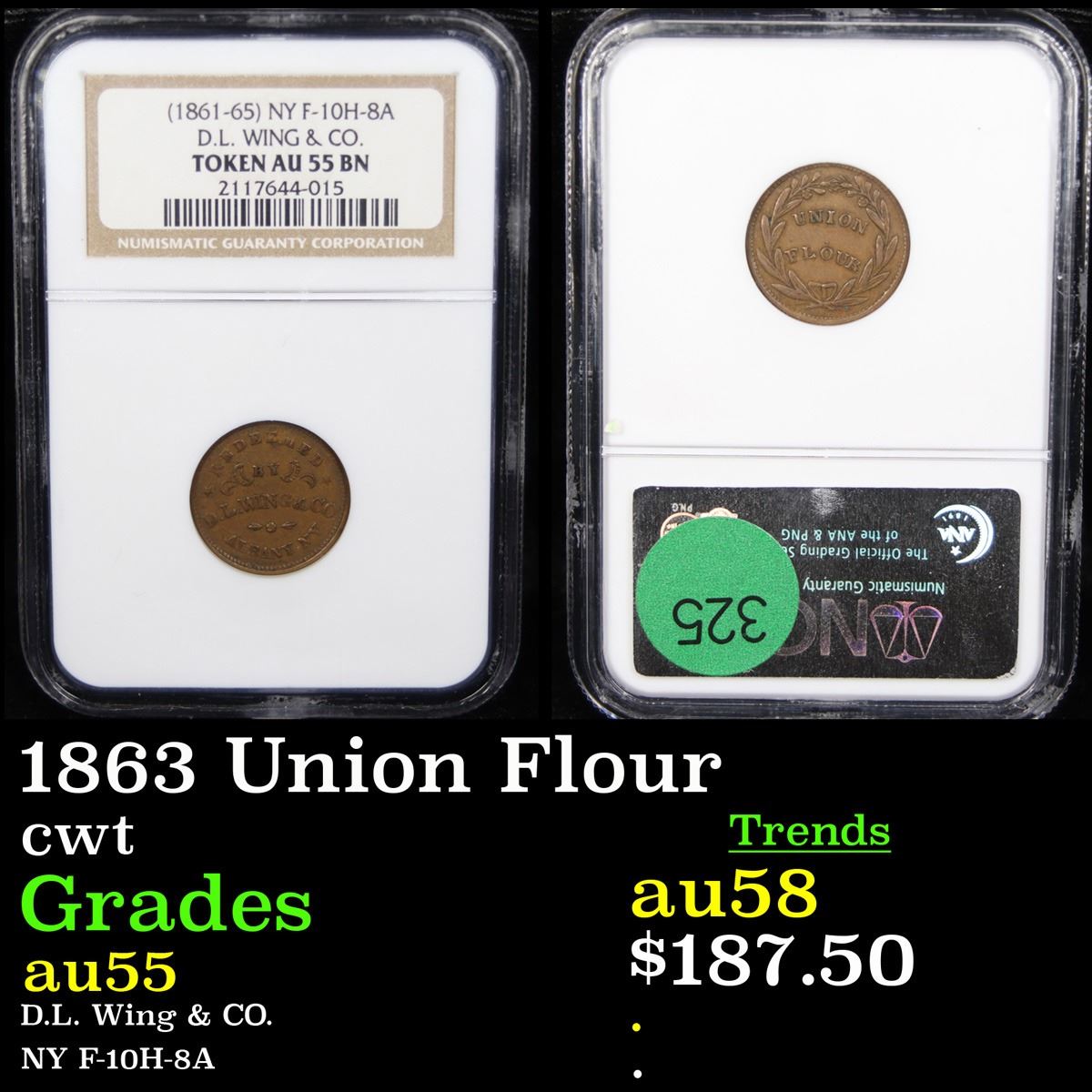 NGC 1863 Union Flour NY F-10H-8A D.L. Wing & CO. Civil War Token 1c Graded au55 By NGC.