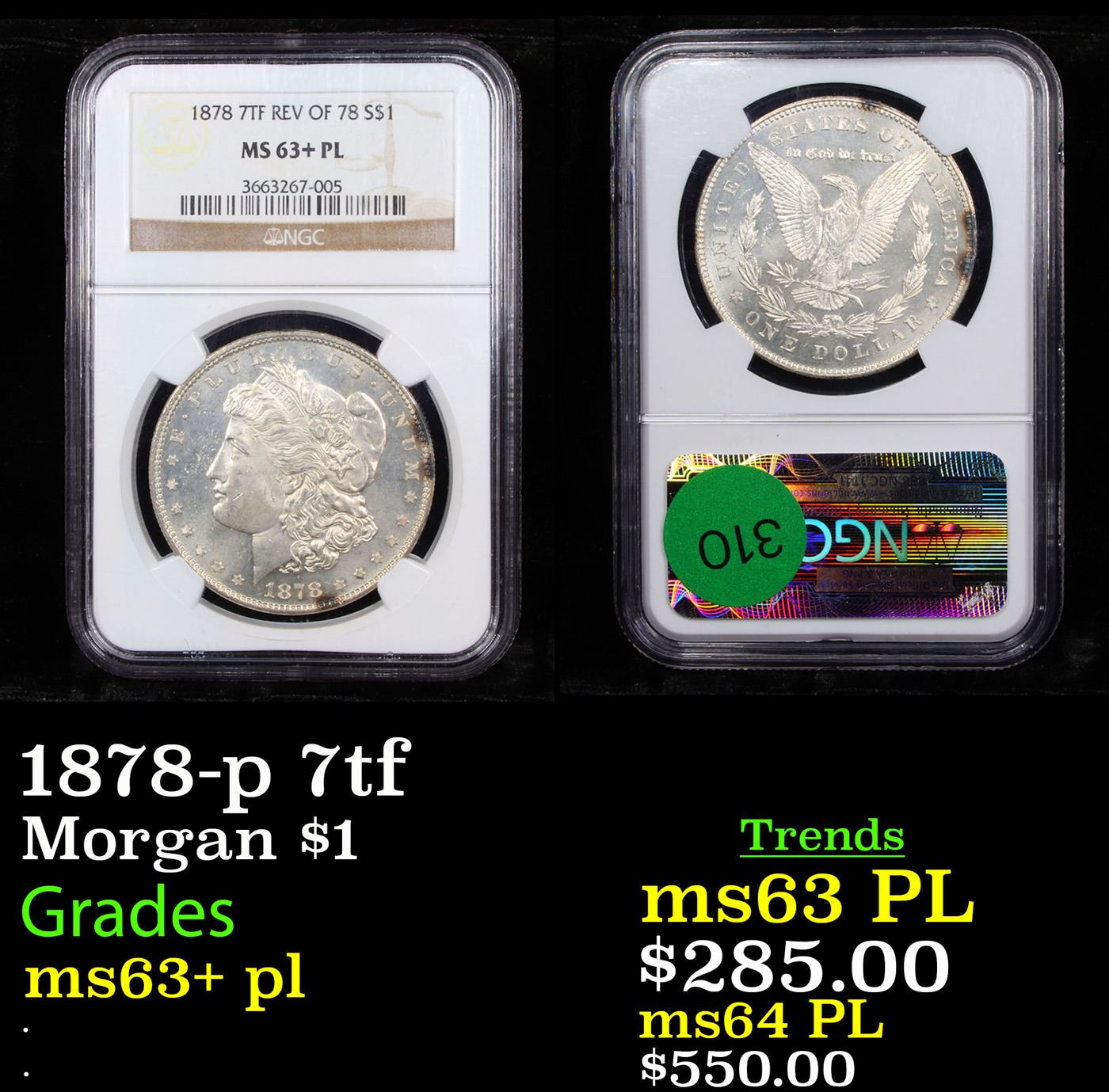 NGC 1878-p 7tf Morgan Dollar $1 Graded ms63+ pl By NGC.
