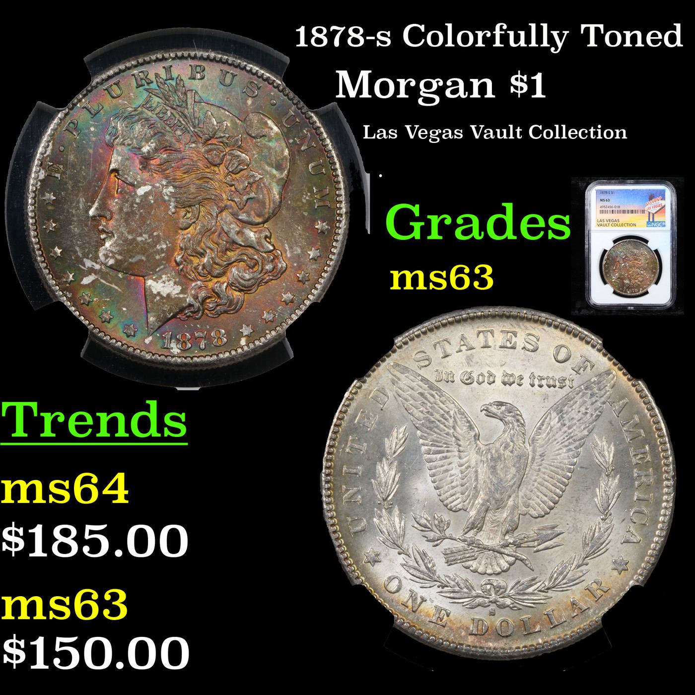 NGC 1878-s Morgan Dollar $1 Graded ms63 By NGC. Slightly better date. First year of issue.