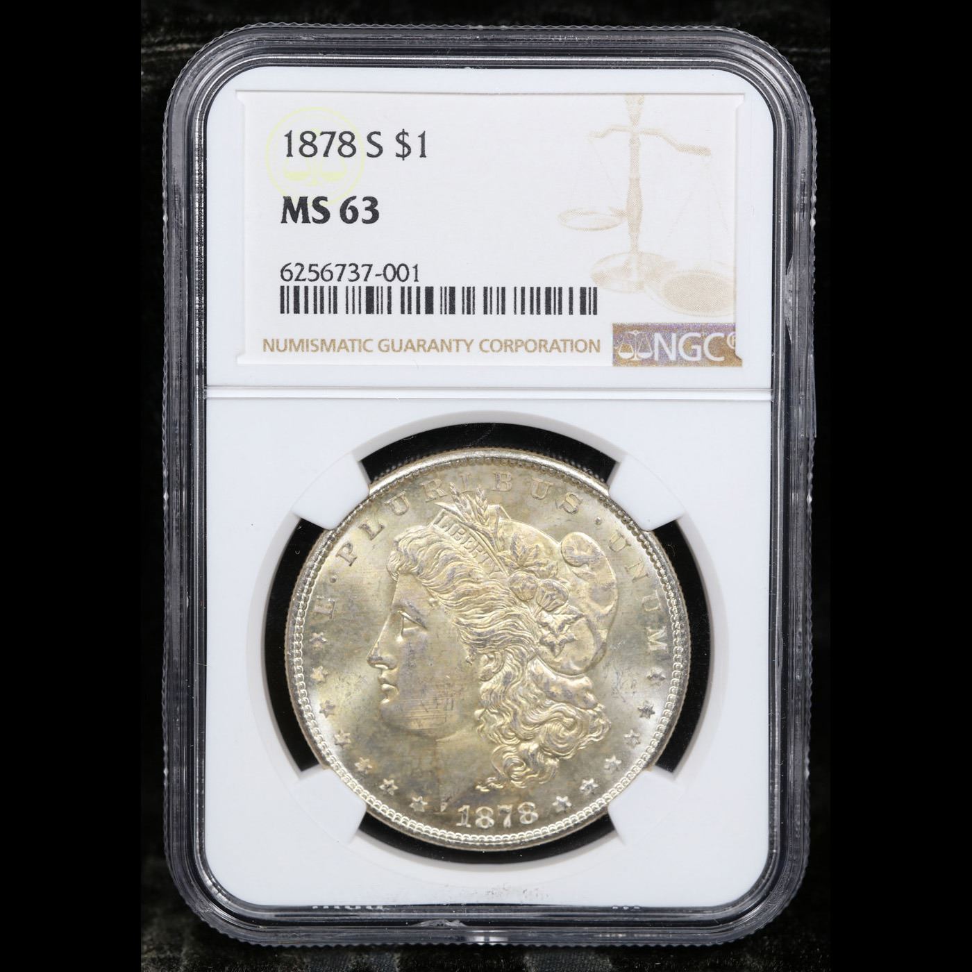 NGC 1878-s Morgan Dollar $1 Graded ms63 By NGC. Slightly better date. First year of issue.
