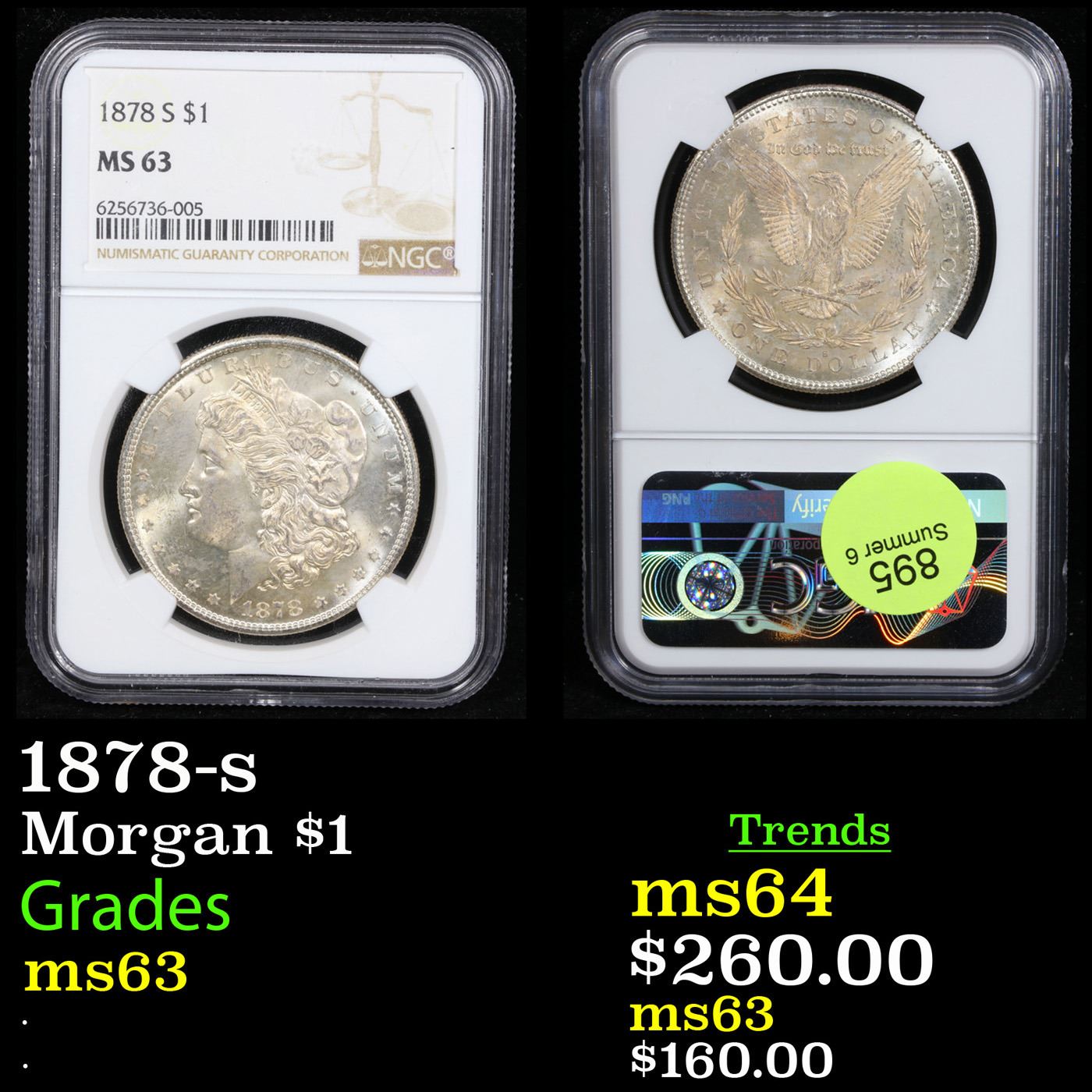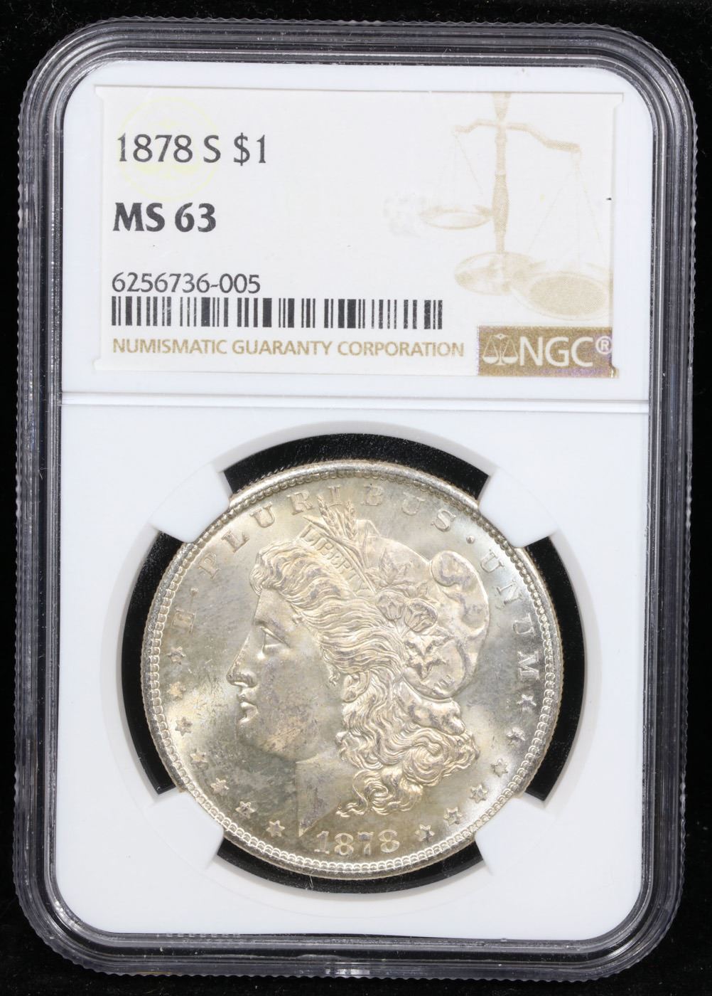 NGC 1878-s Morgan Dollar $1 Graded ms63 By NGC. Slightly better date. First year of issue.