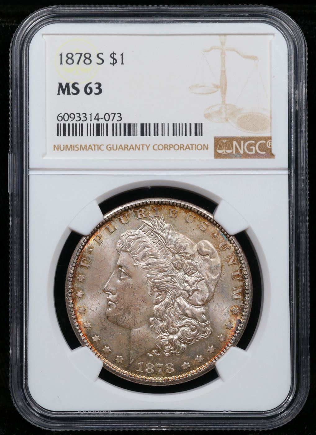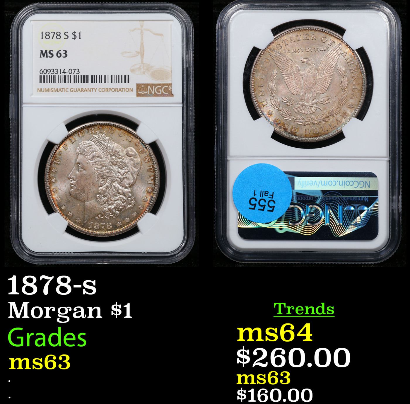 NGC 1878-s Morgan Dollar $1 Graded ms63 By NGC. Slightly better date. First year of issue.