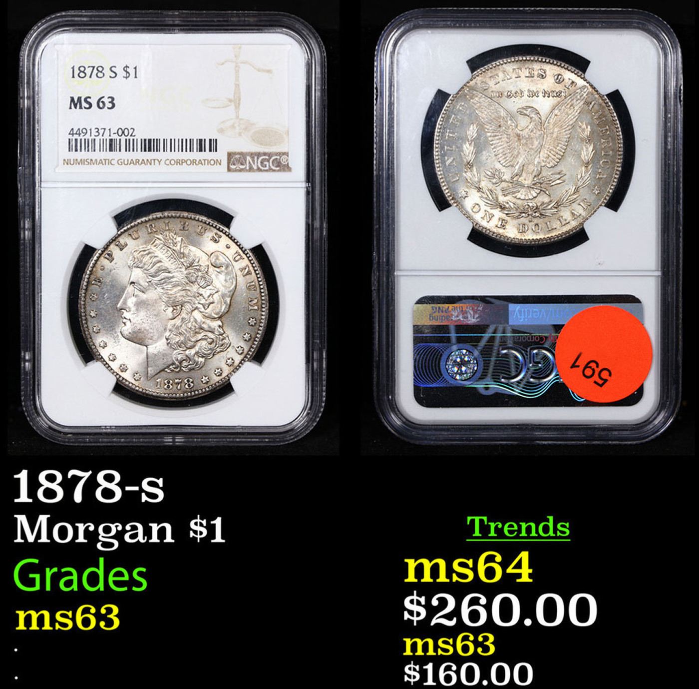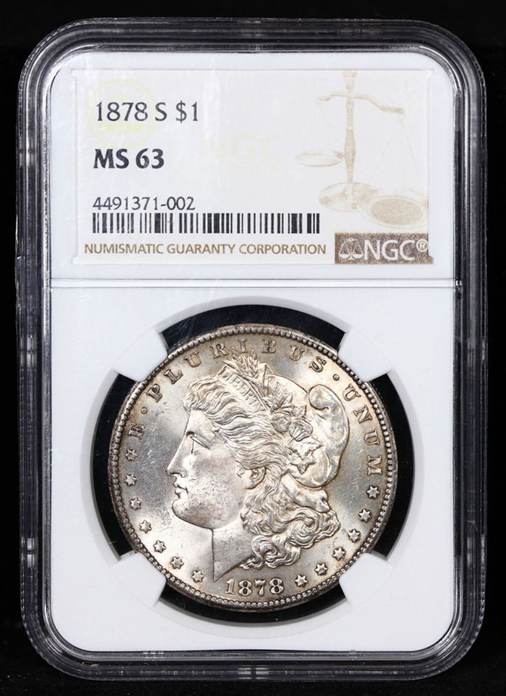 NGC 1878-s Morgan Dollar $1 Graded ms63 By NGC. Slightly better date. First year of issue.