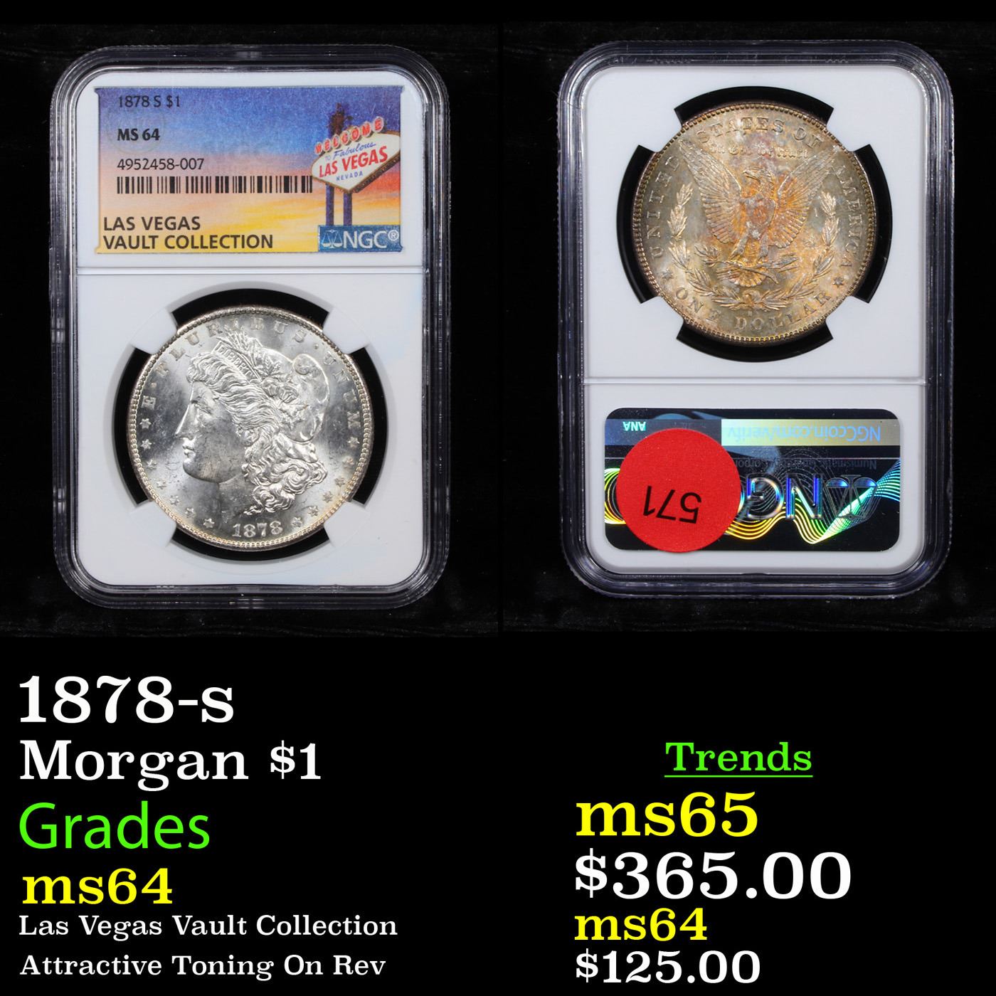 NGC 1878-s Morgan Dollar $1 Graded ms64 By NGC. Slightly better date. First year of issue.