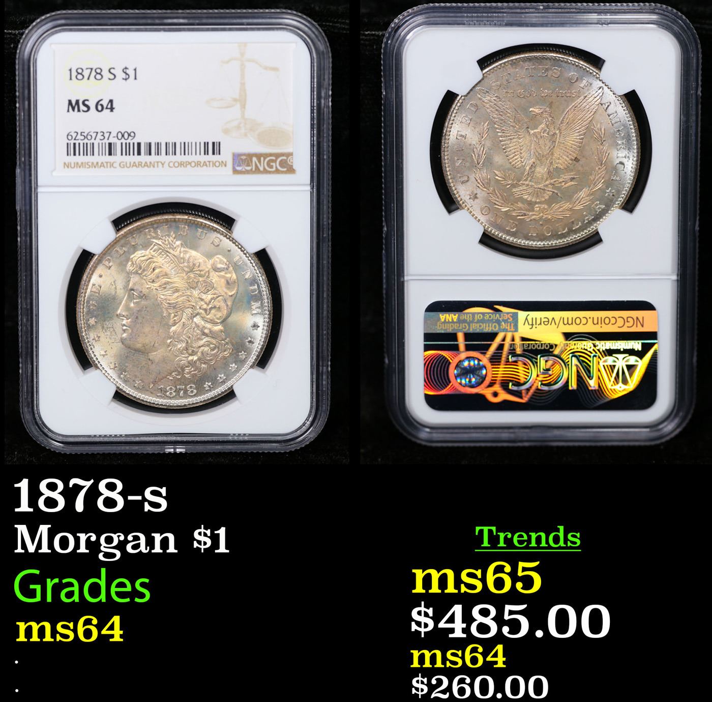 NGC 1878-s Morgan Dollar $1 Graded ms64 By NGC. Slightly better date. First year of issue.