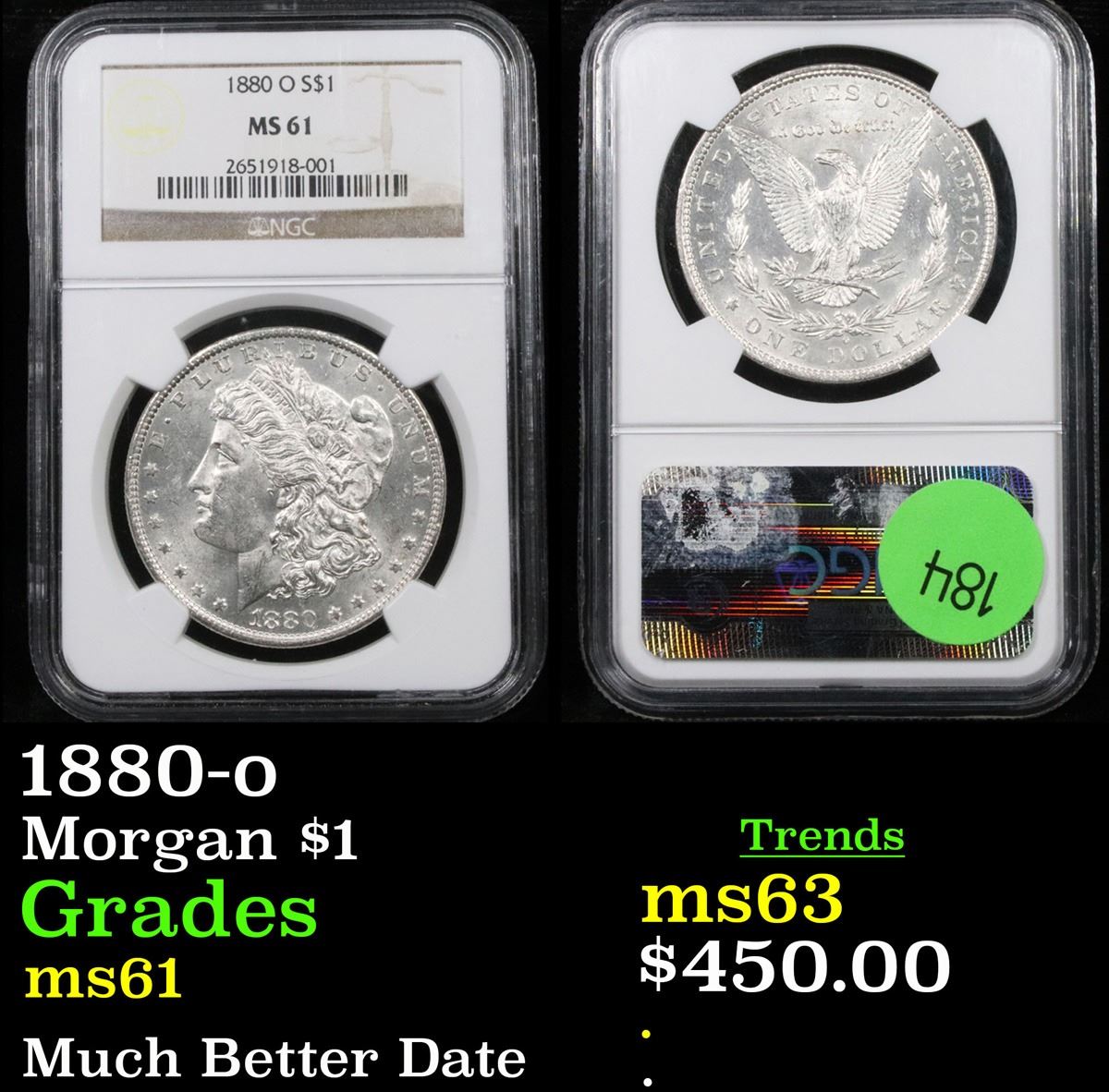 NGC 1880-o Morgan Dollar $1 Graded ms61 By NGC.