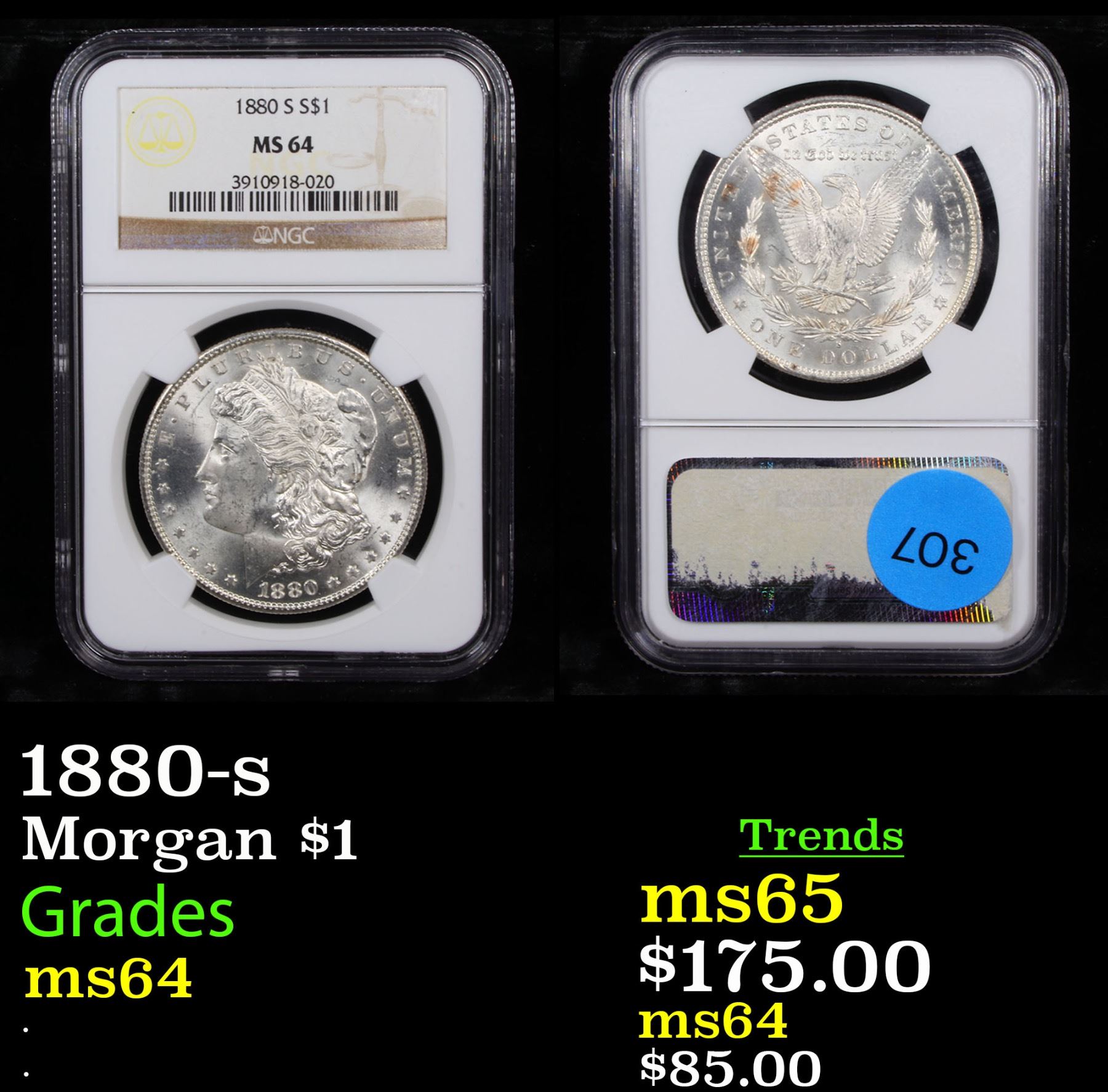 NGC 1880-s Morgan Dollar $1 Graded ms64 By NGC.