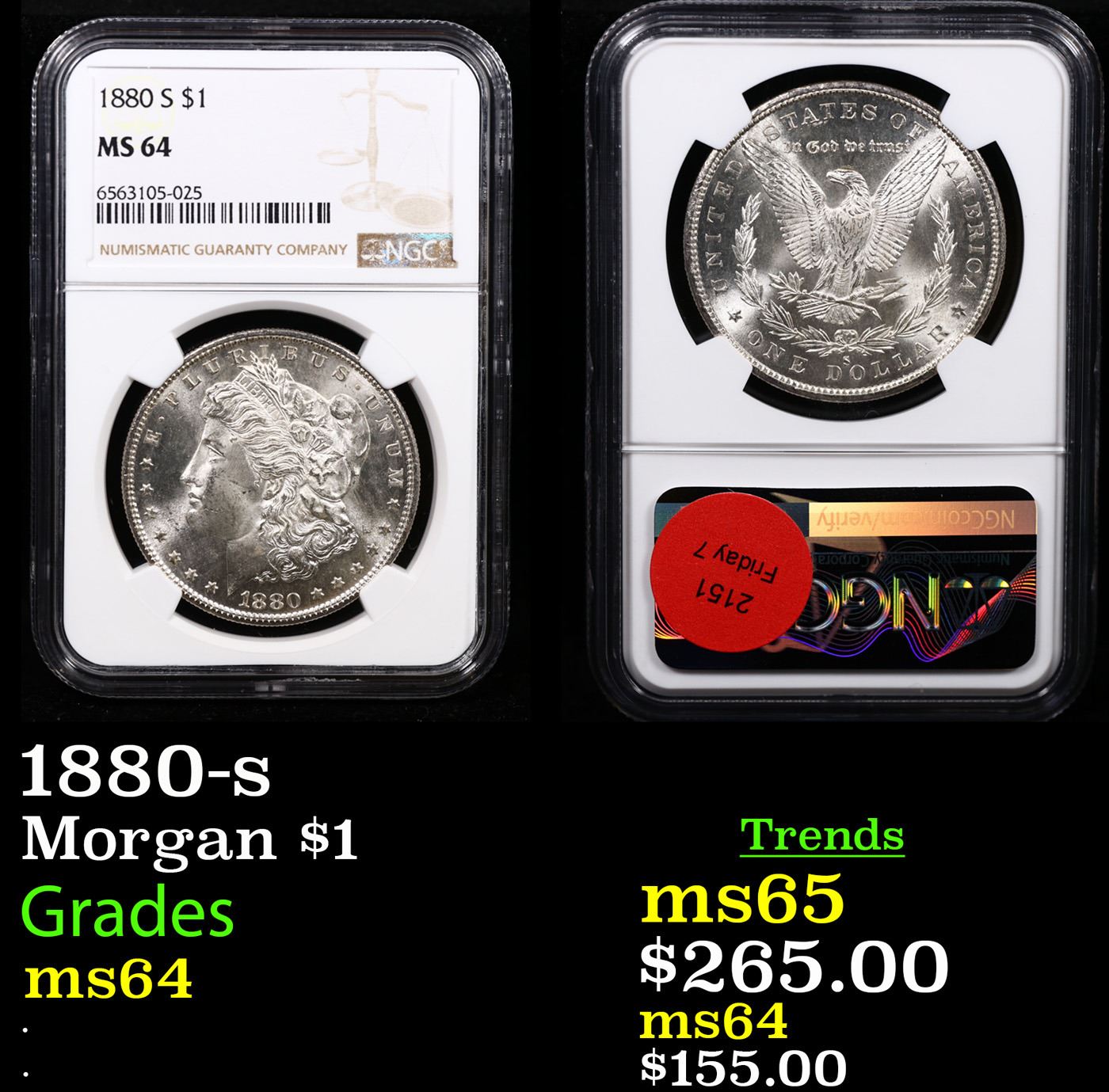 NGC 1880-s Morgan Dollar $1 Graded ms64 By NGC.