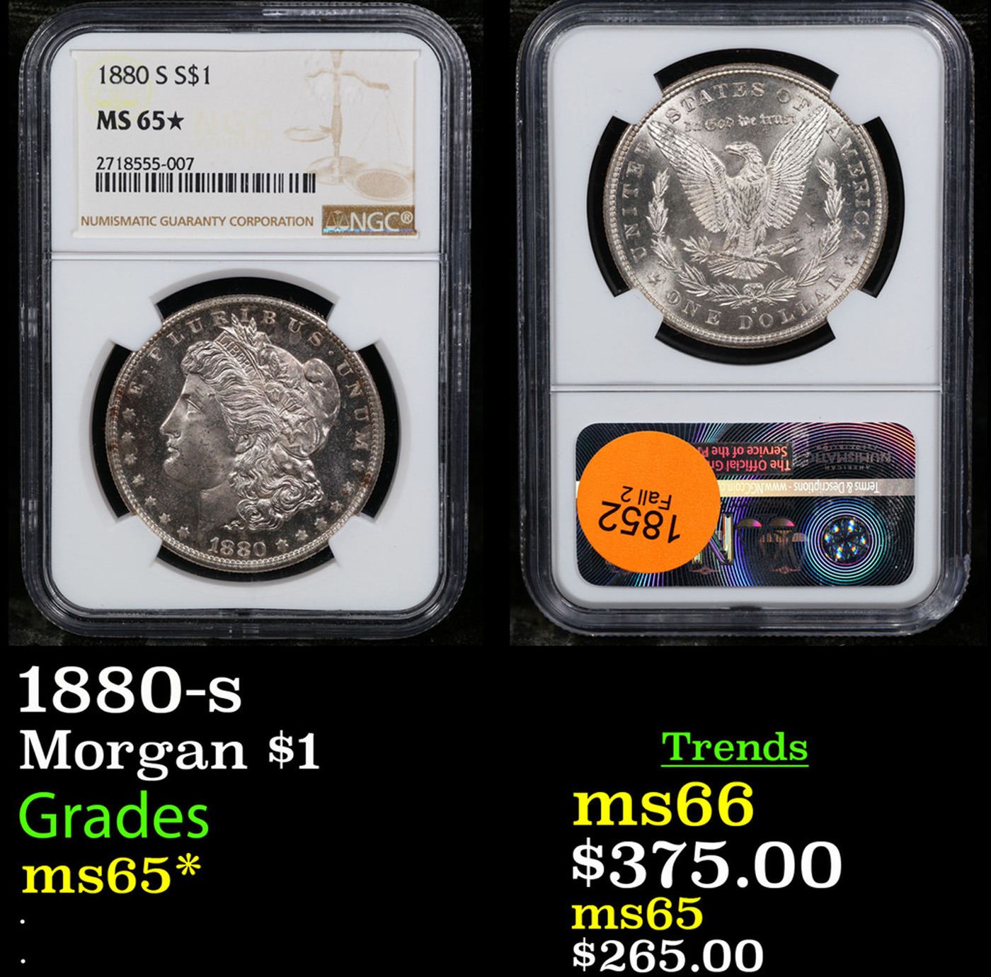 NGC 1880-s Morgan Dollar $1 Graded ms65* By NGC.