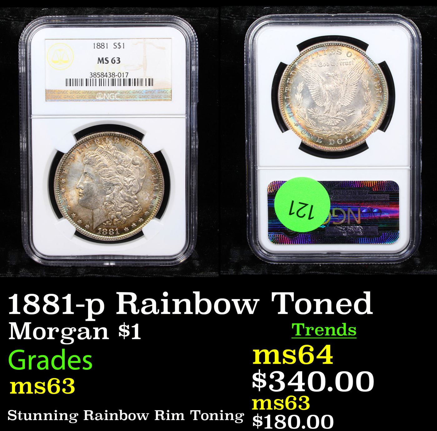 NGC 1881-p Rainbow Toned Morgan Dollar $1 Graded ms63 By NGC.