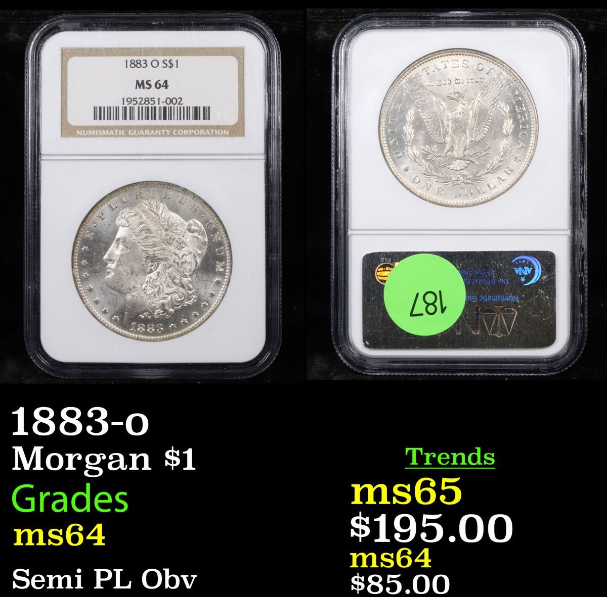 NGC 1883-o Morgan Dollar $1 Graded ms64 By NGC.