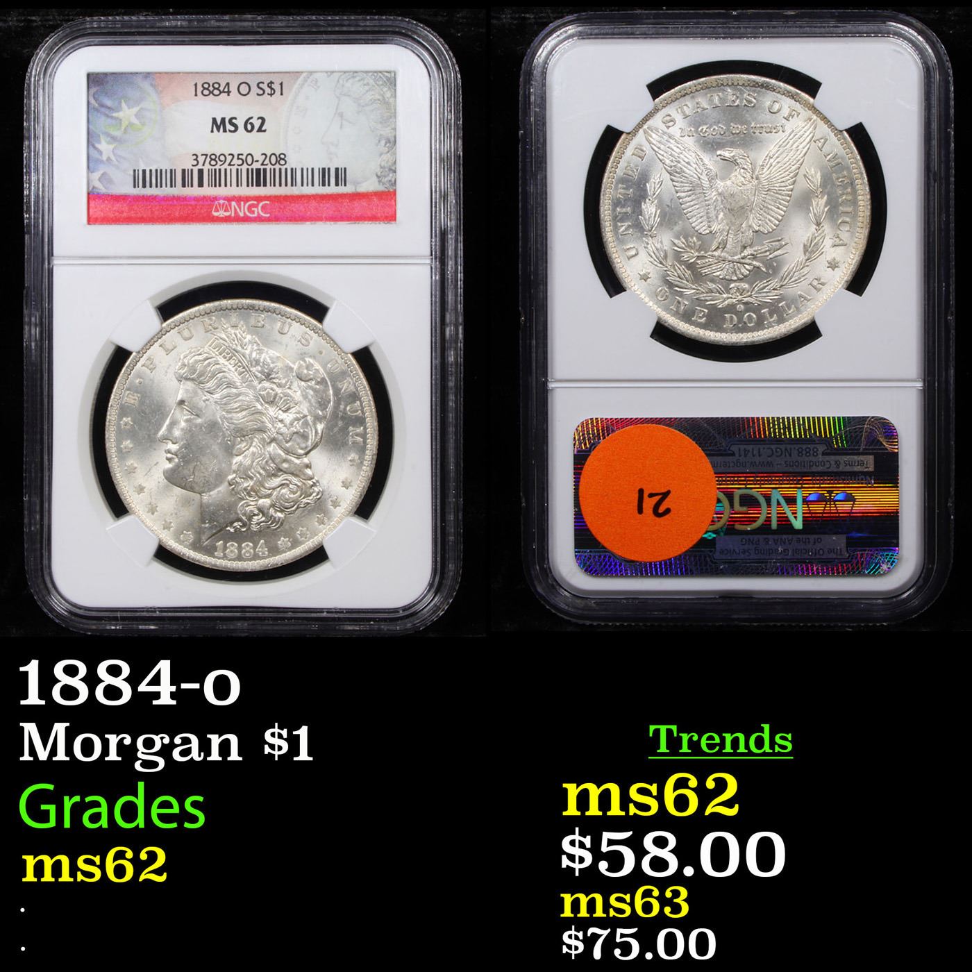 NGC 1884-o Morgan Dollar $1 Graded ms62 By NGC.