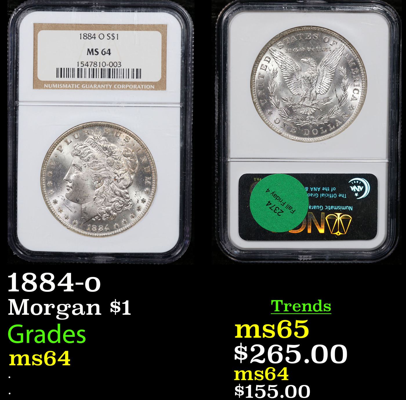 NGC 1884-o Morgan Dollar $1 Graded ms64 By NGC.
