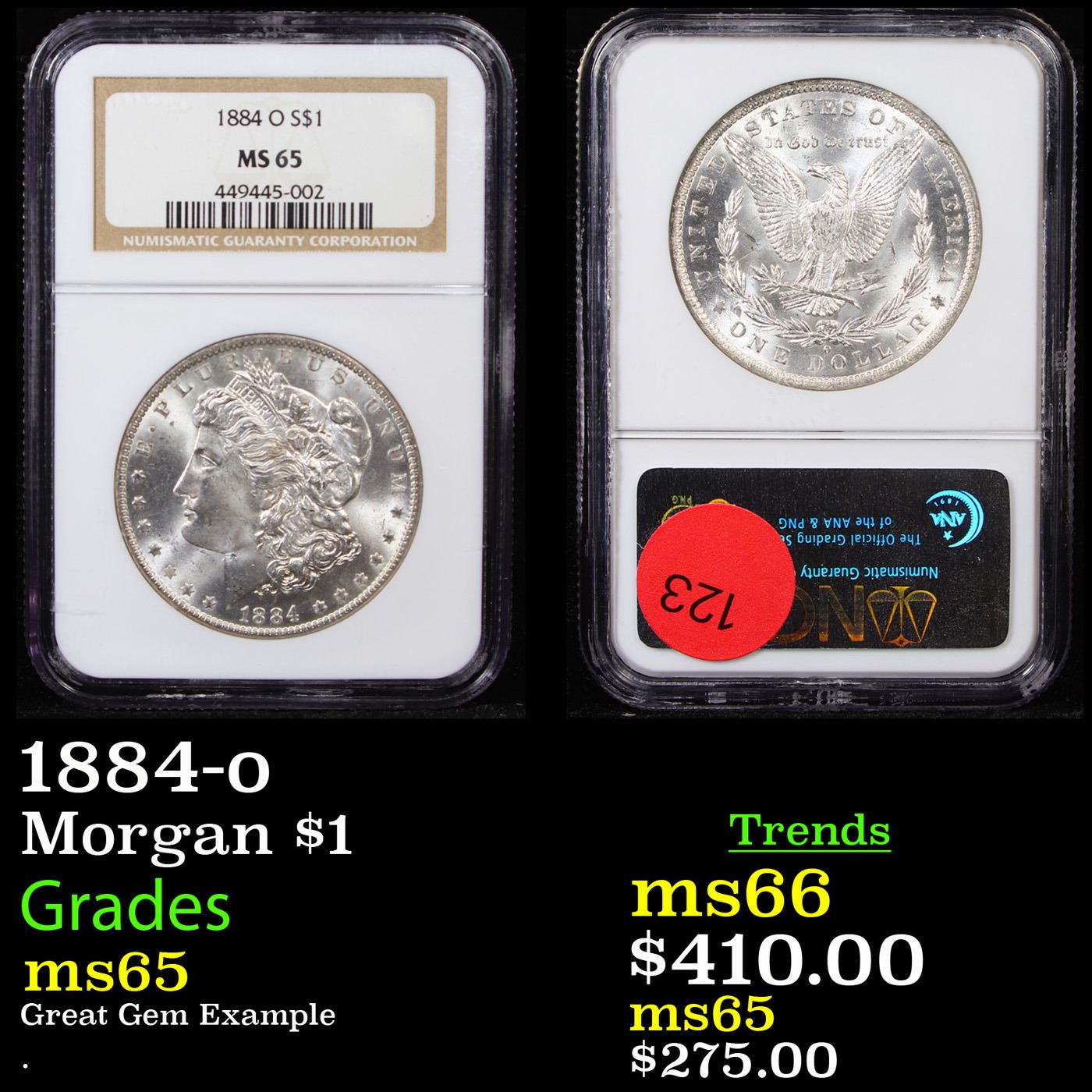 NGC 1884-o Morgan Dollar $1 Graded ms65 By NGC.