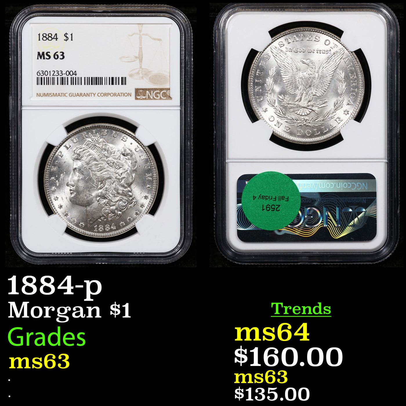 NGC 1884-p Morgan Dollar $1 Graded ms63 By NGC.