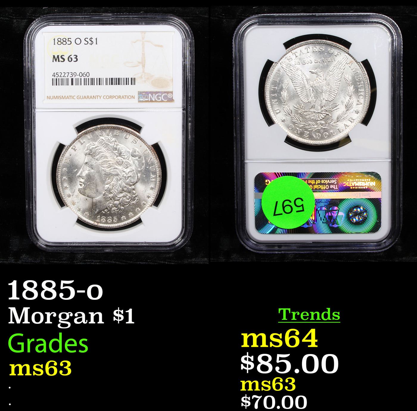 NGC 1885-o Morgan Dollar $1 Graded ms63 By NGC.
