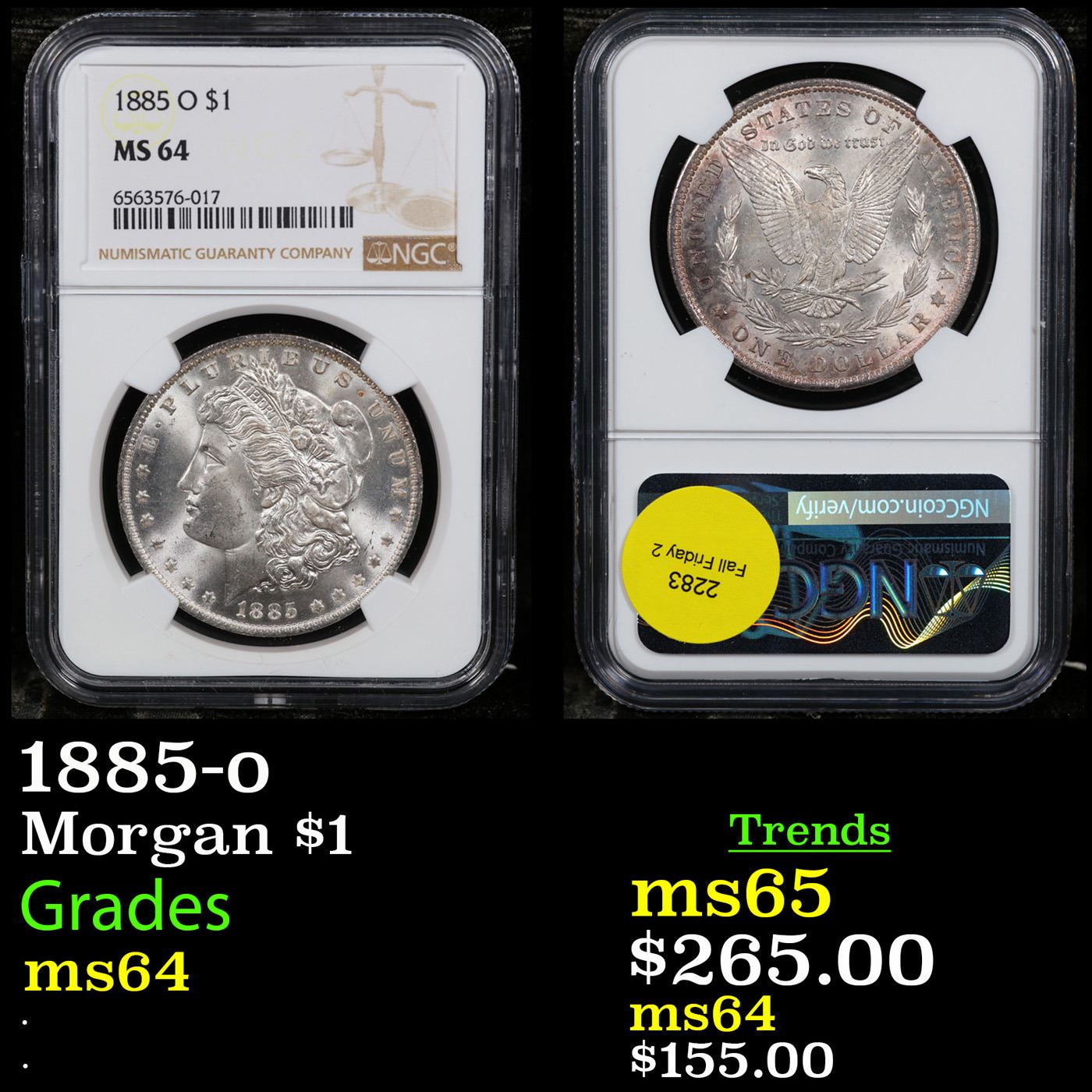 NGC 1885-o Morgan Dollar $1 Graded ms64 By NGC.