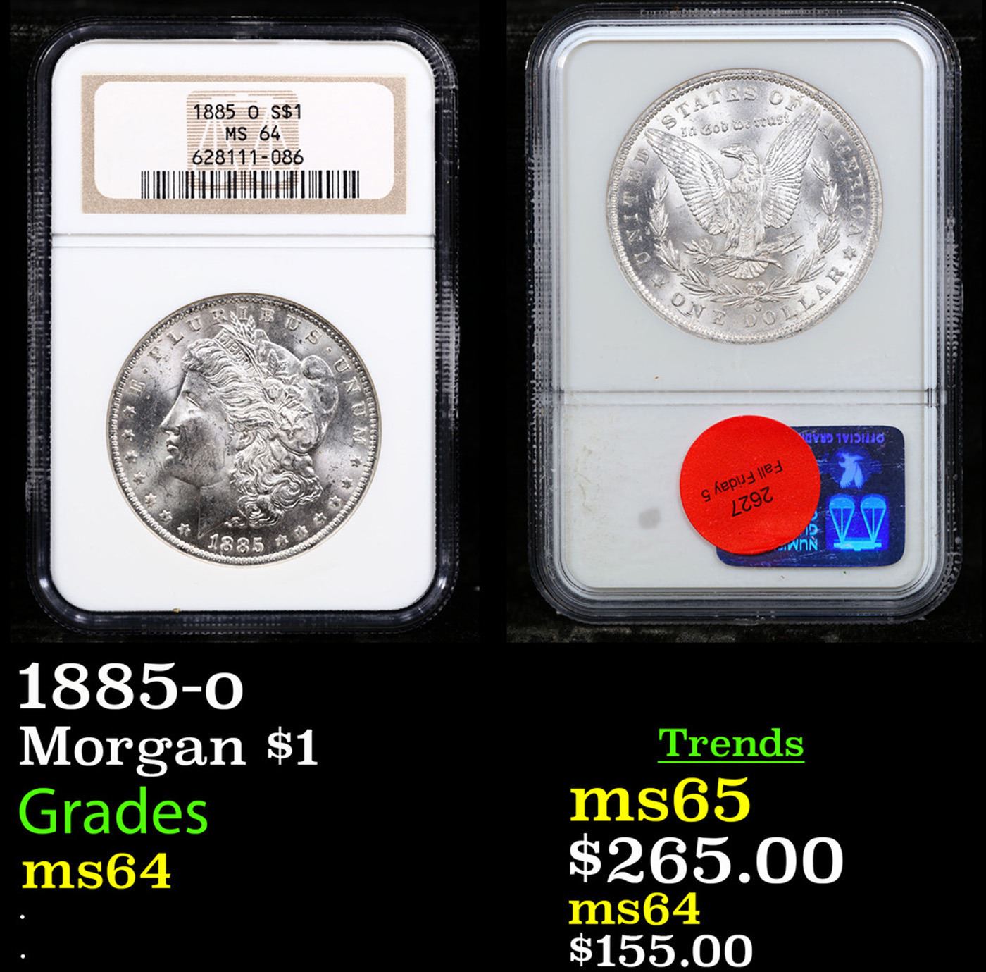 NGC 1885-o Old Holder Morgan Dollar $1 Graded ms64 By NGC.