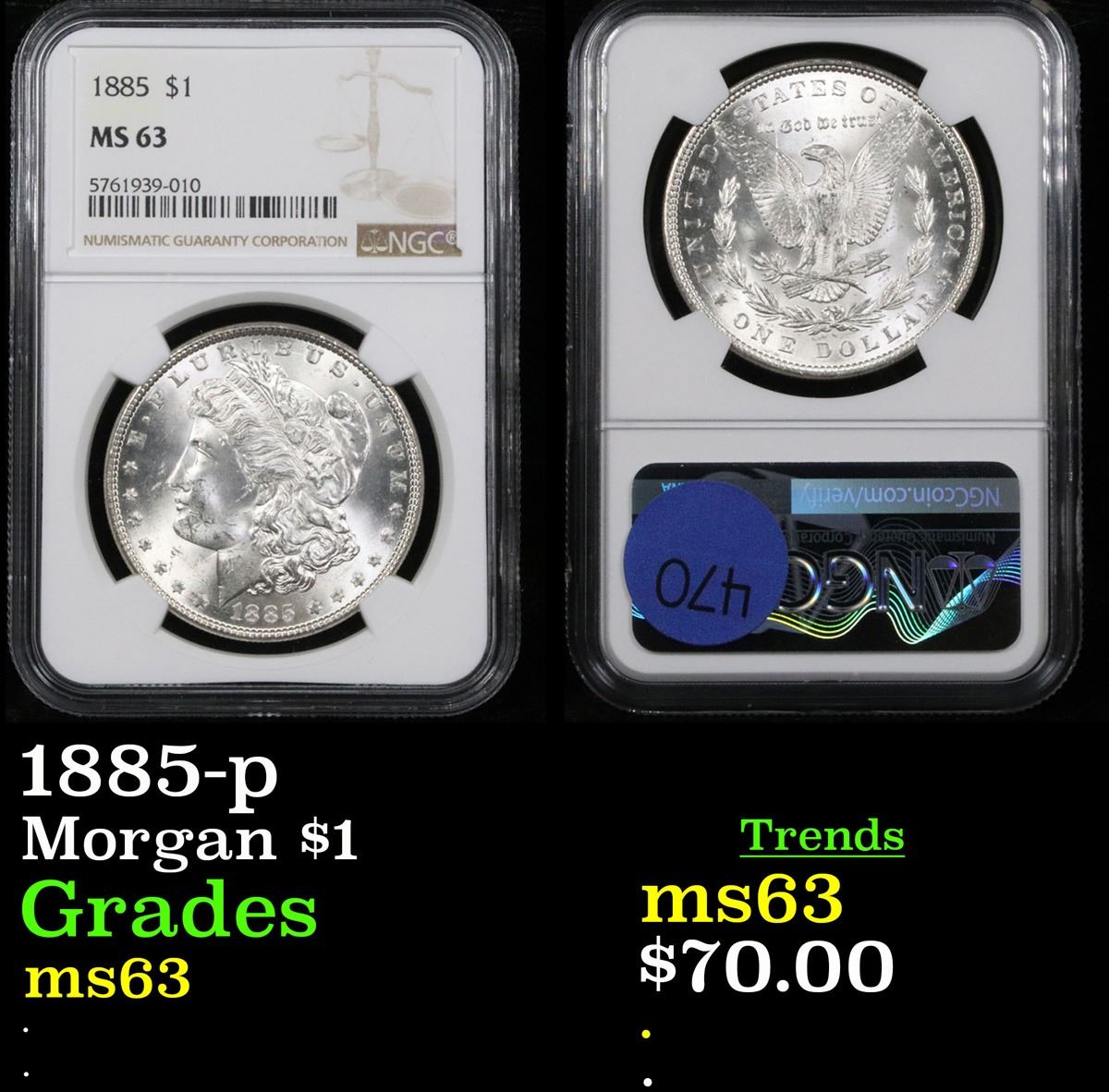 NGC 1885-p Morgan Dollar $1 Graded ms63 By NGC.
