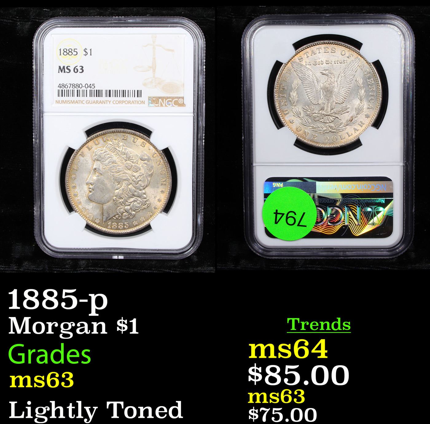 NGC 1885-p Morgan Dollar $1 Graded ms63 By NGC.